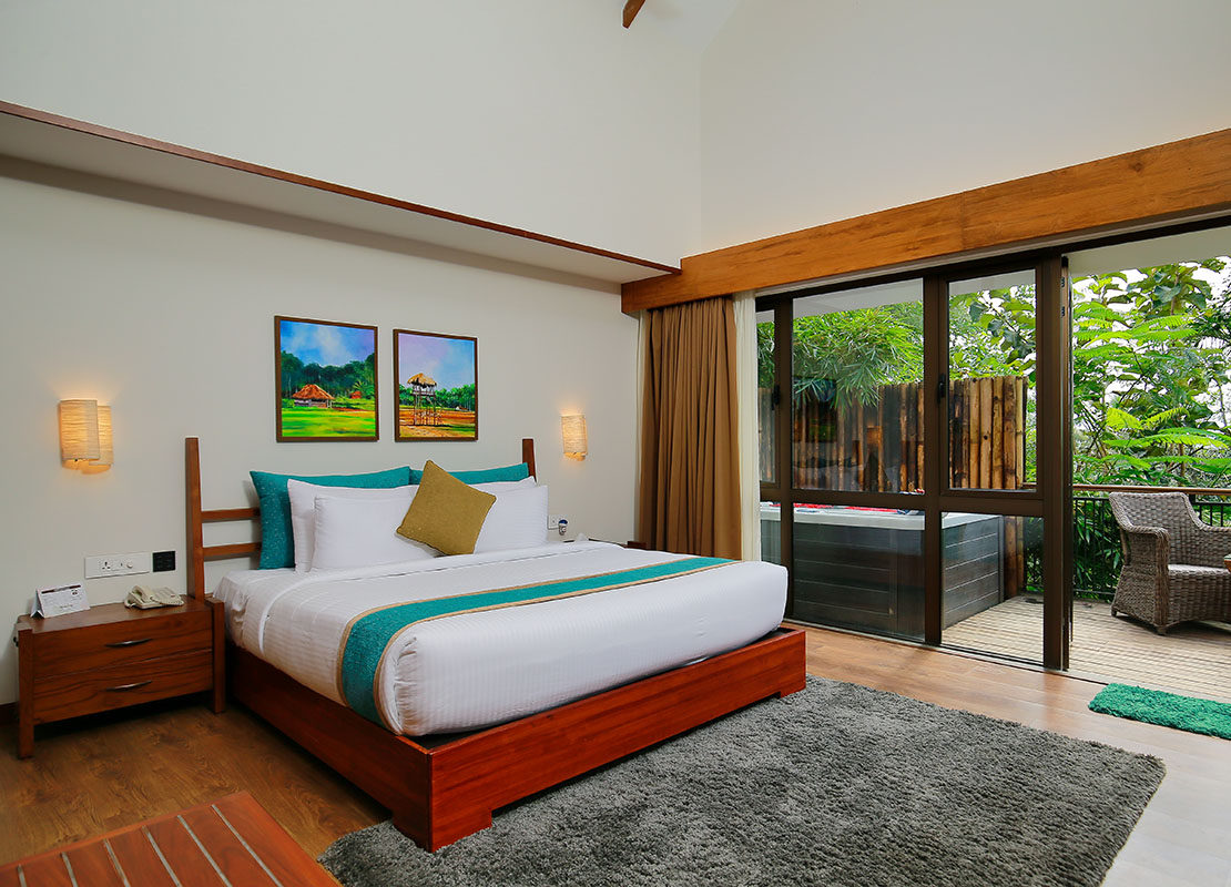 Discover pure bliss at Morickap Resort’s Luxury Jacuzzi Villas in Wayanad, Kerala. These spacious sanctuaries offer modern bathrooms and captivating views of serene waters and lush forests. Immerse yourself in the soothing waters of your private jacuzzi, all while taking in the enchanting scenery through glass-covered windows or from the private balcony. Wake up undisturbed to the dawn’s beauty from your cottage, making Morickap Resort the ultimate destination for an idyllic Wayanad retreat.