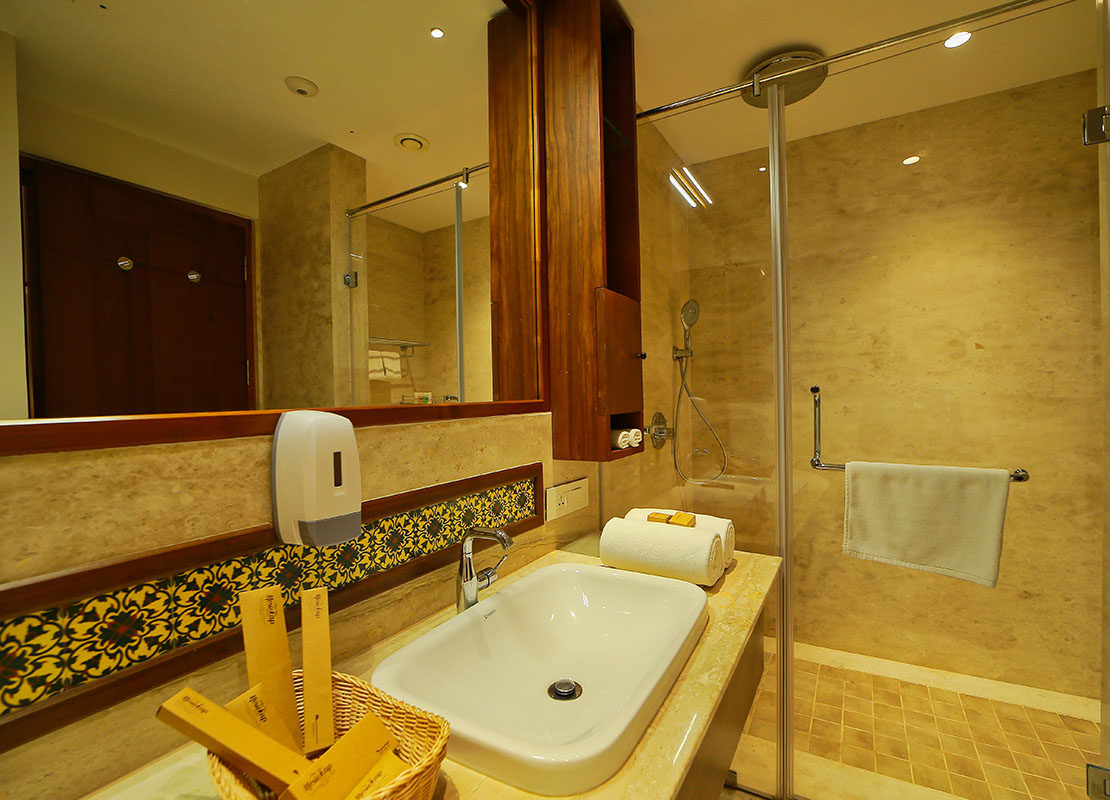 Set in subdued hues, the décor enhances the relaxed ambience in this room designed stunningly for your comfort.